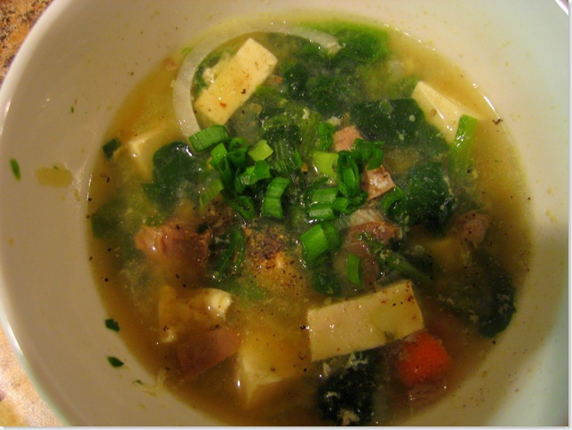 Sometimes I really just want some soup. Something filling, but not fattening. Comforting and tasty. Today i made up some soup from rummaging in my pantry/fridge and think i found something fantastic b/c it tasted great and took all of 15 min to make!